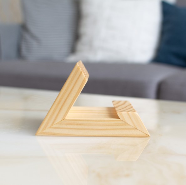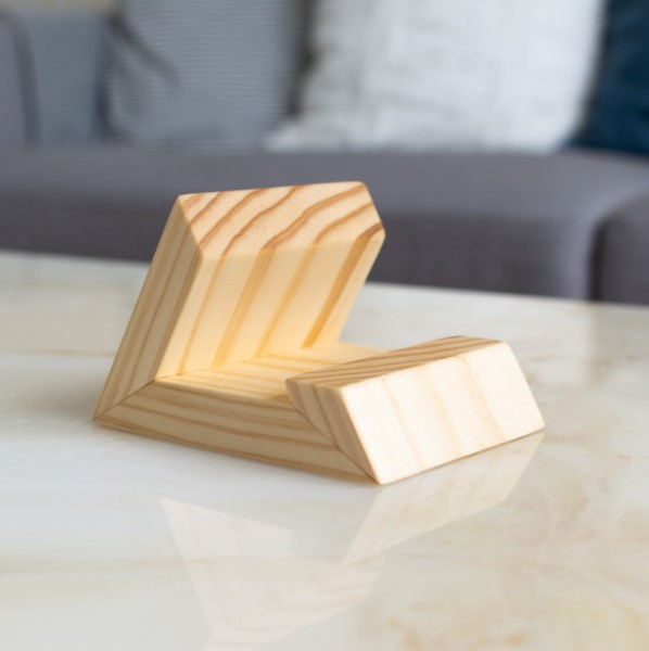 Premium handcrafted wooden mobile stand made from natural pinewood. Stable, stylish & eco-friendly for desks, video calls, and gifting.